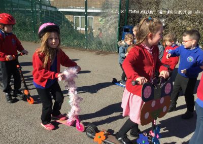 We are taking part in Sustrans Big Walk and Wheel. Last week the children 'blinged' their bikes and scooters and we had a lovely parade in the playground.