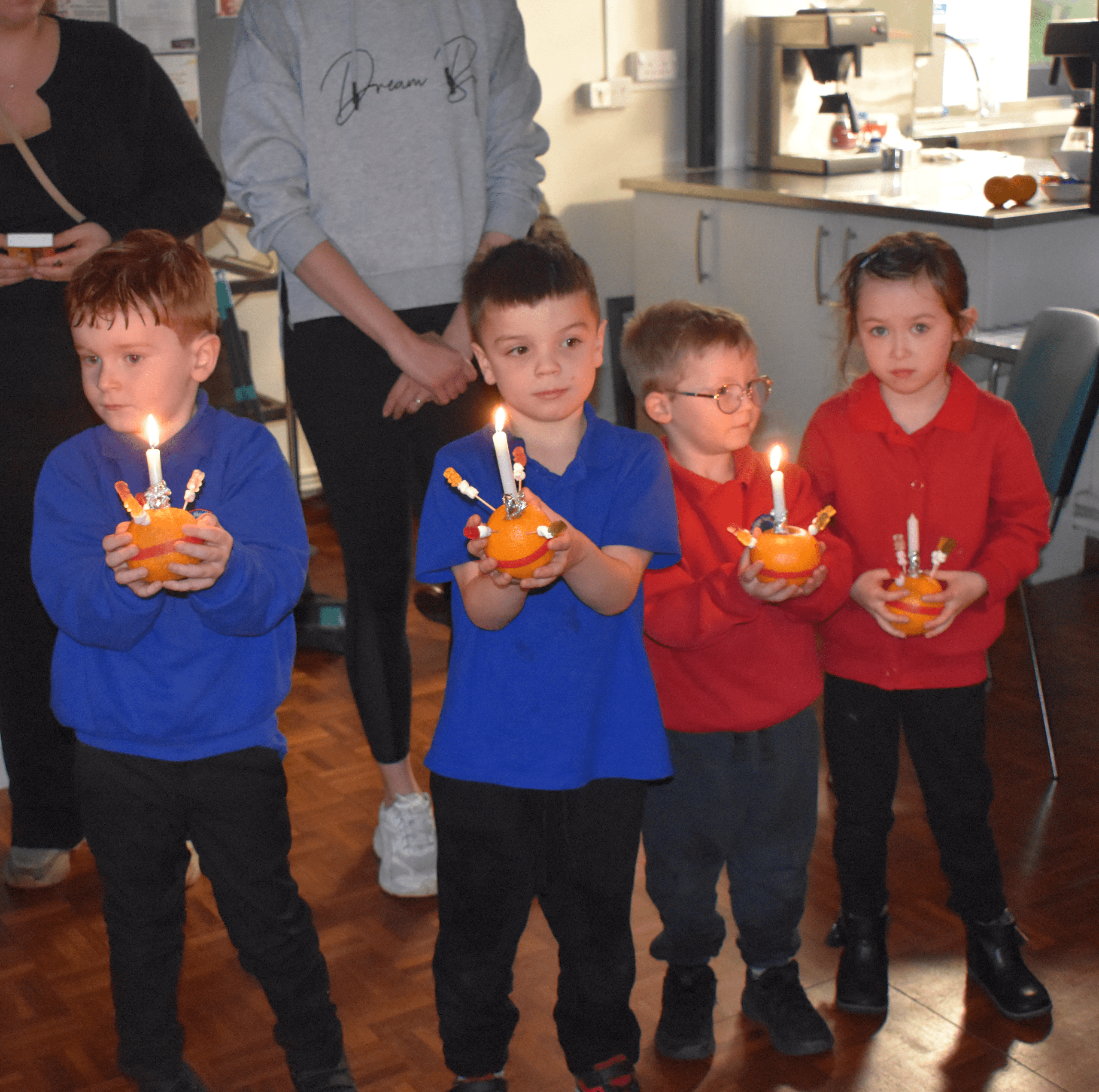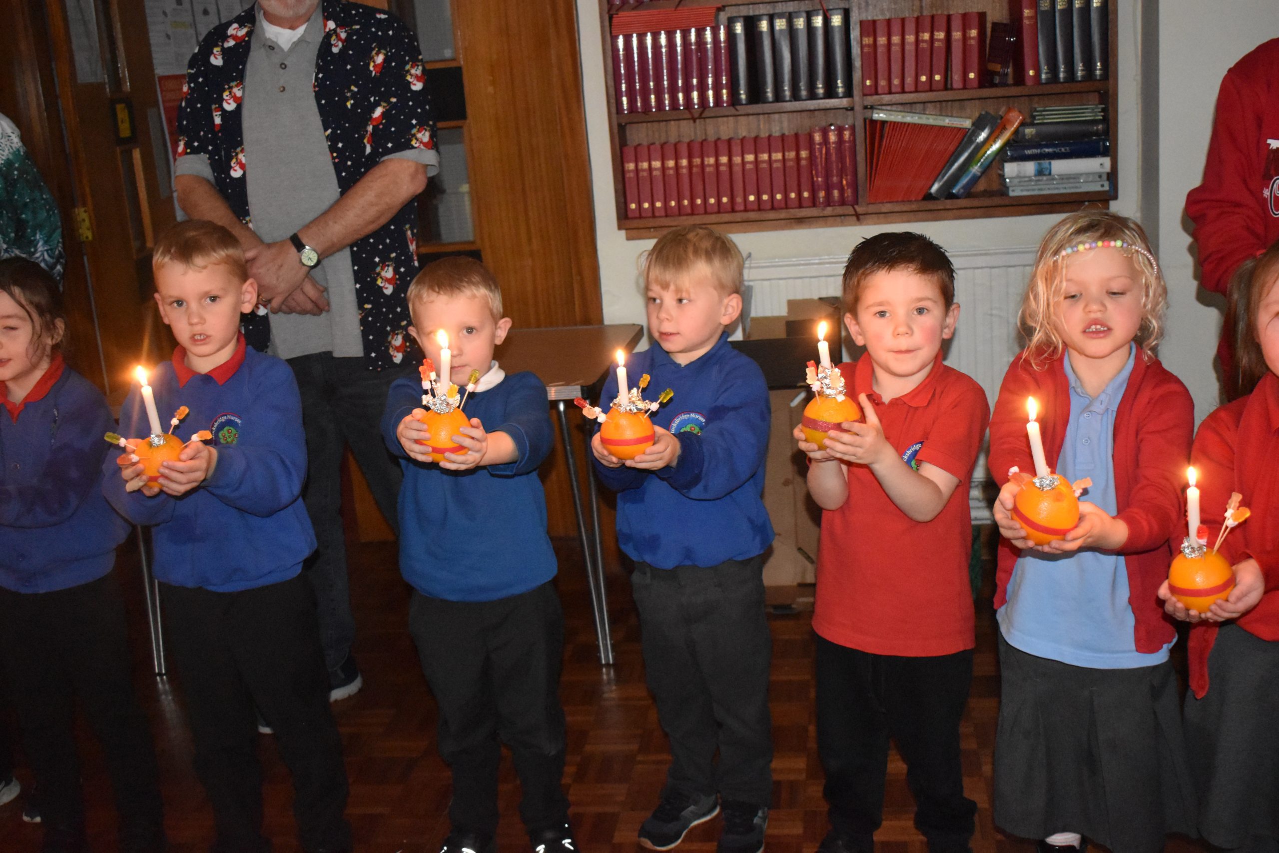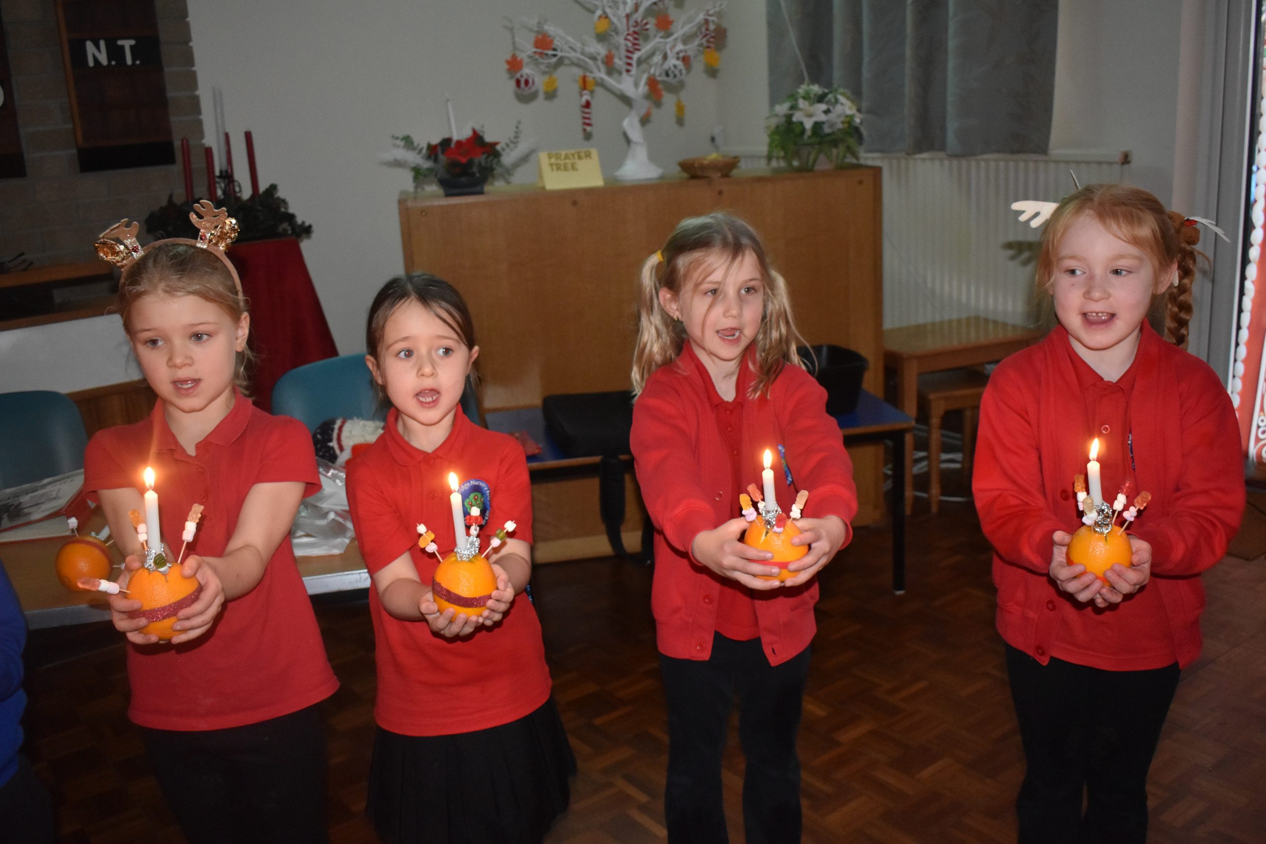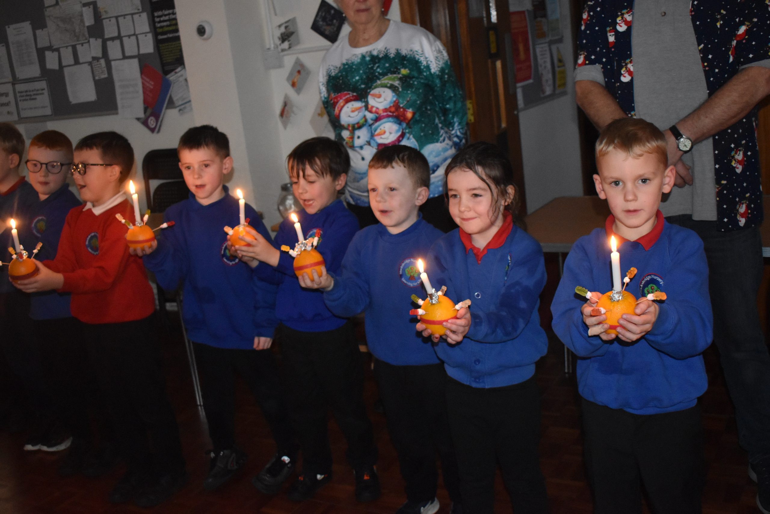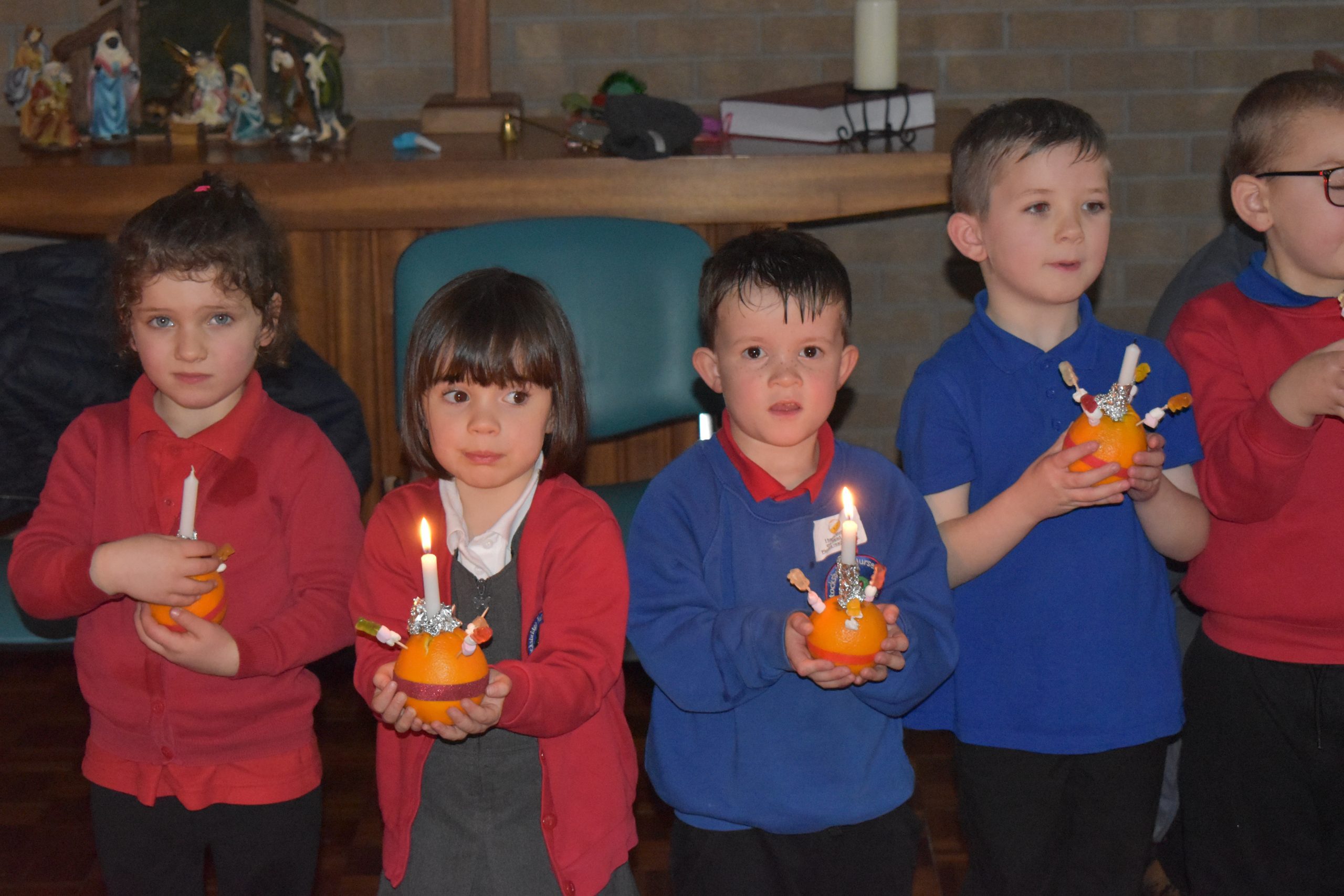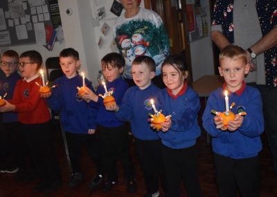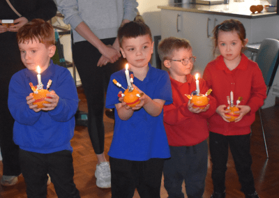 Class 7 & 8 went to The Christian Centre on Thursday. We got a little wet in the pouring rain! The children listened to a story and then made their Christingle. We sang whilst the candles were lit and it was beautiful.